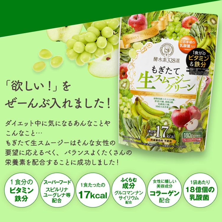 酵水素328選もぎたて生スムージーグリーン(フレッシュアップル味)
